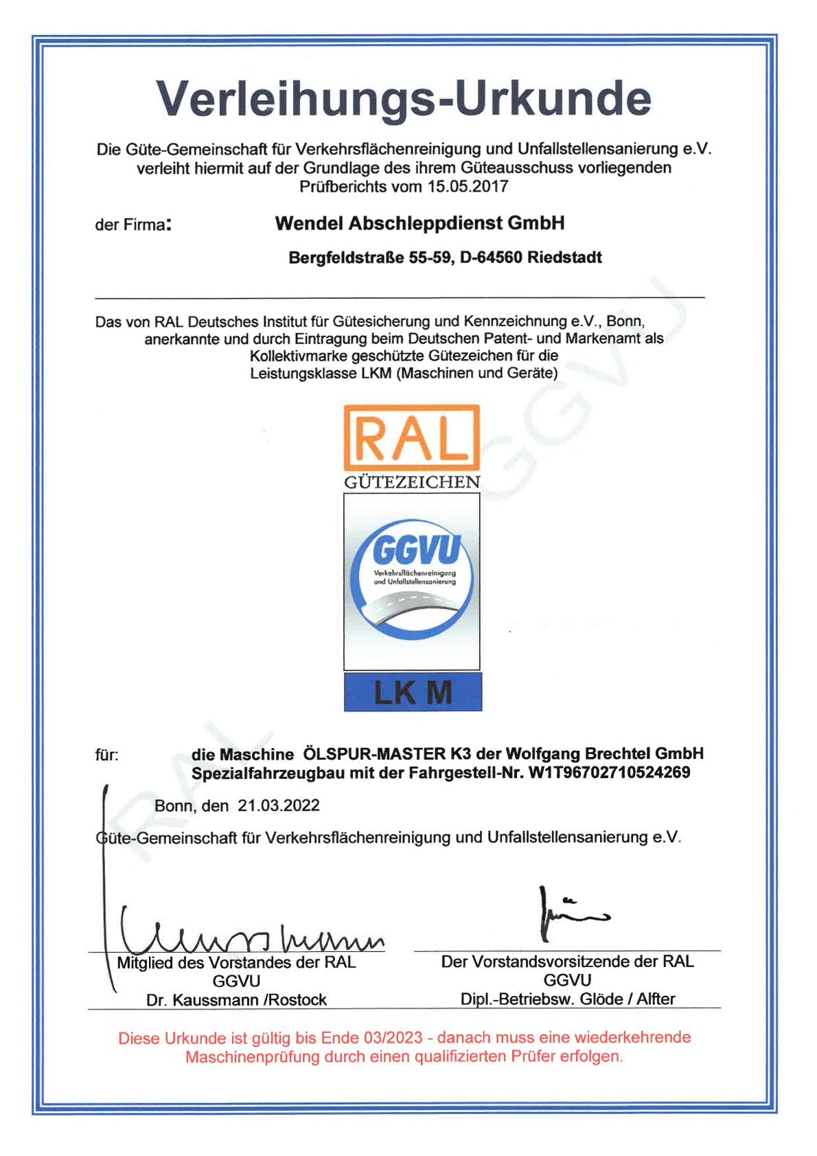Wir sind nun auch für den Umweltschutz im Einsatz und beseitigen mit unserem Ölspur-Master K3 von der Firma Brechtel Ölschäden, Gefahrstoffe u.v.m.