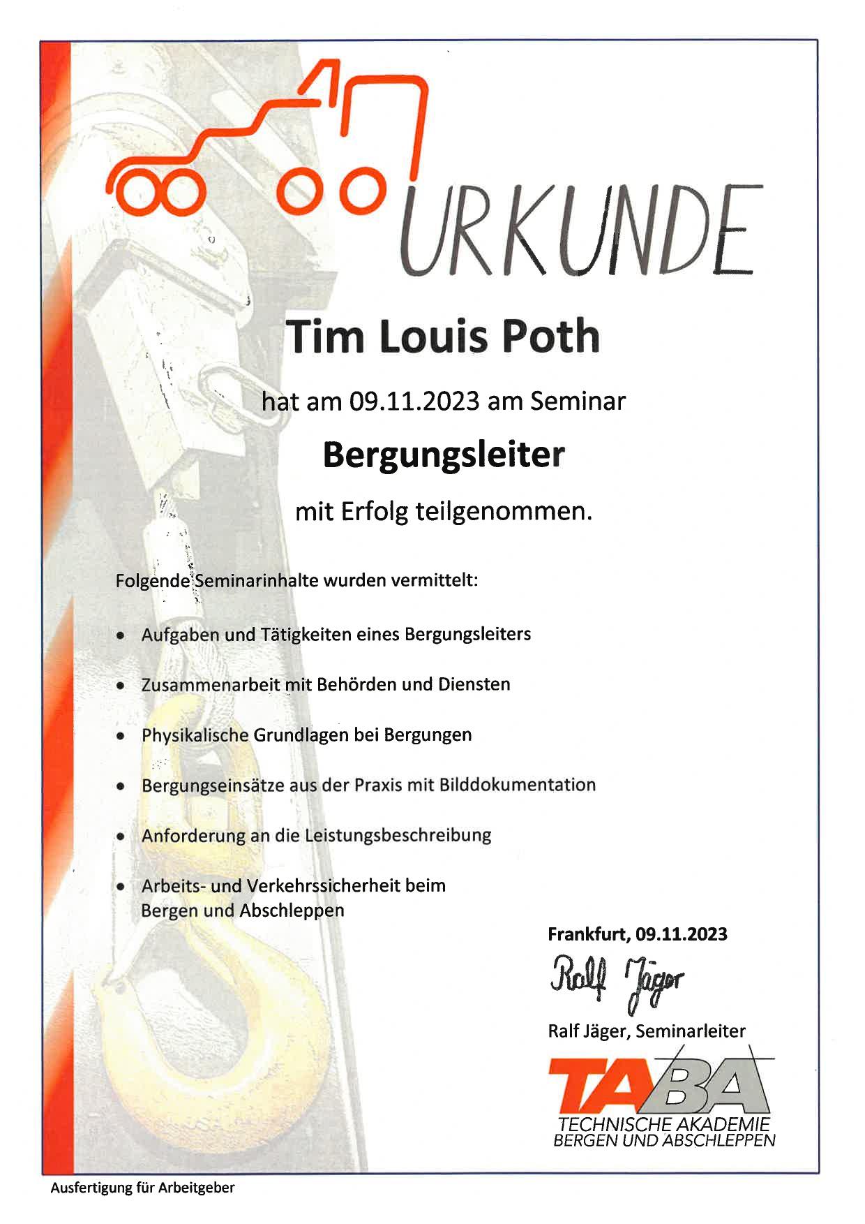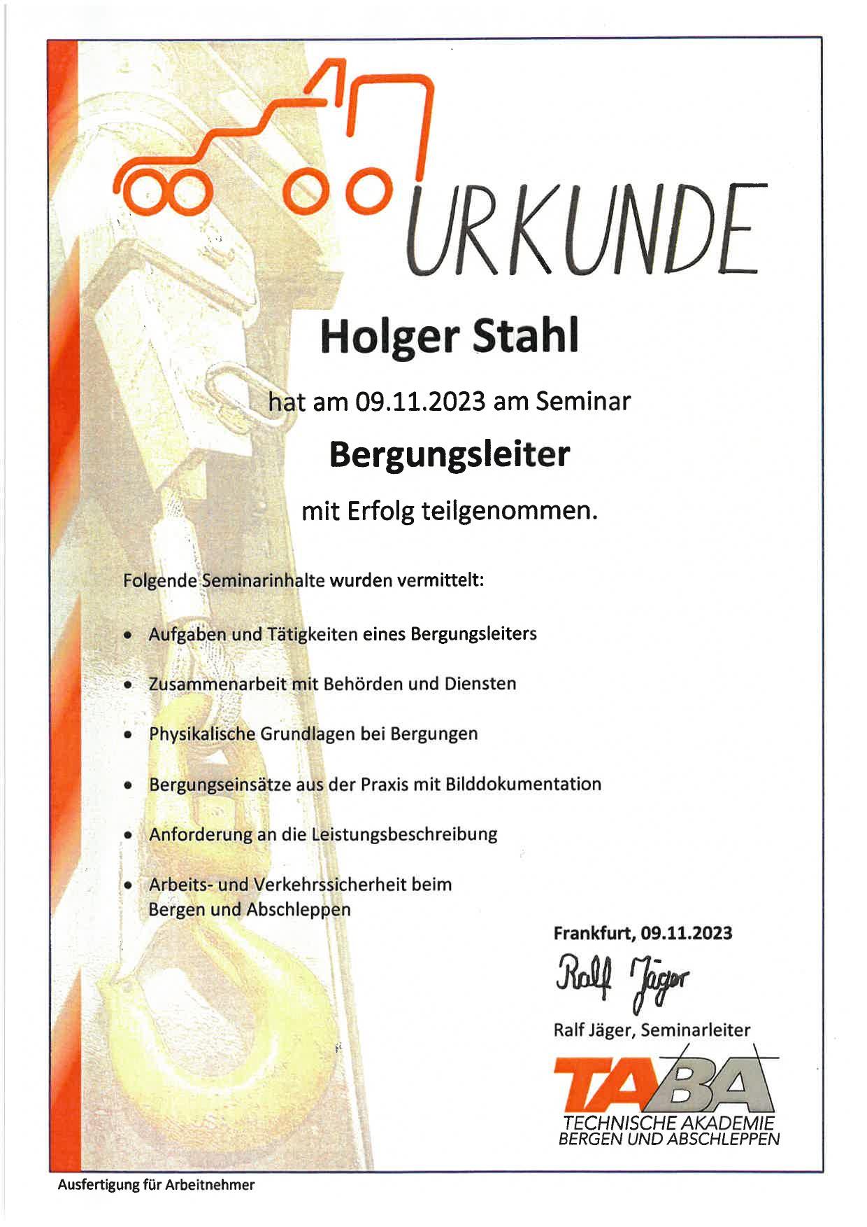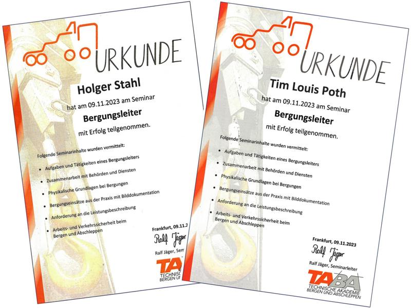 Unsere Mitarbeiter, Holger Stahl und Tim Louis Poth, haben letzte Woche erfolgreich die Weiterbildung zum Bergungsleiter abgeschlossen.