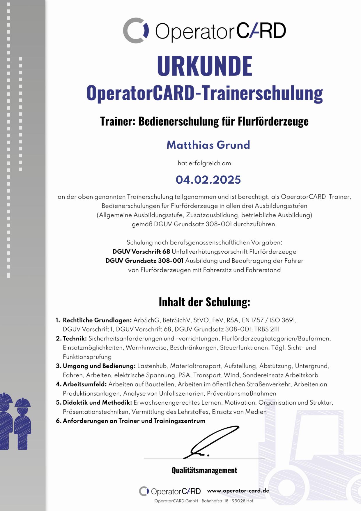 Wir sind der Interessengemeinschaft OperatorCARD beigetreten und haben uns in den letzten Wochen und Monaten fortgebildet. Nach den erfolgreichen Prüfungen dürfen wir uns jetzt Schulungszentrum der OperatorCARD nennen.
