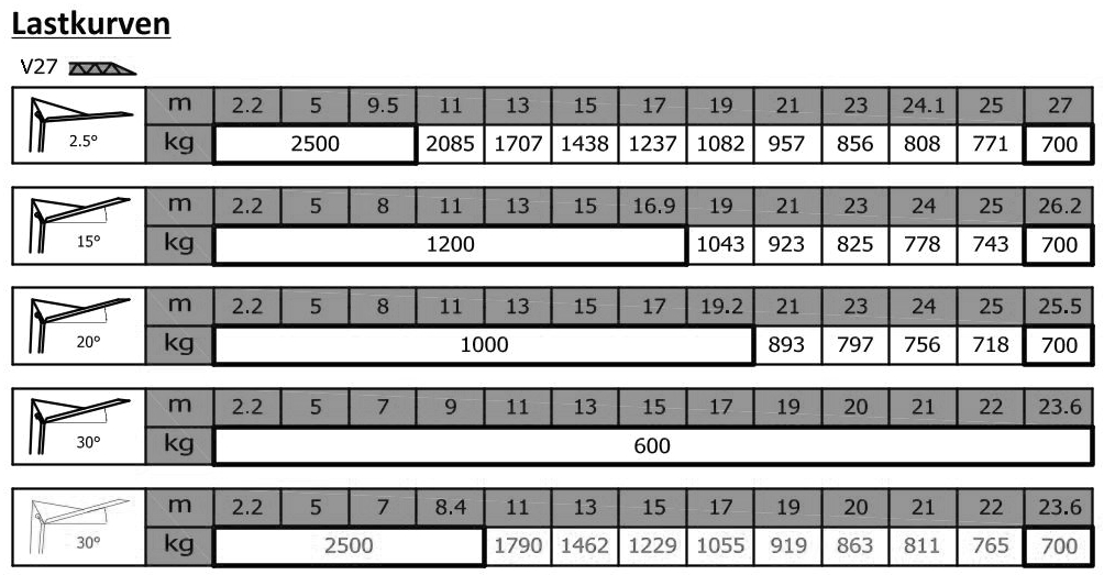| max. Tragkraft (kg) bis 9,50 m | 2500 |