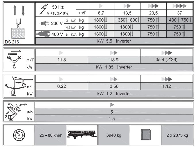 | max. Tragkraft (kg) bis 8,30 m: | 1.800 |