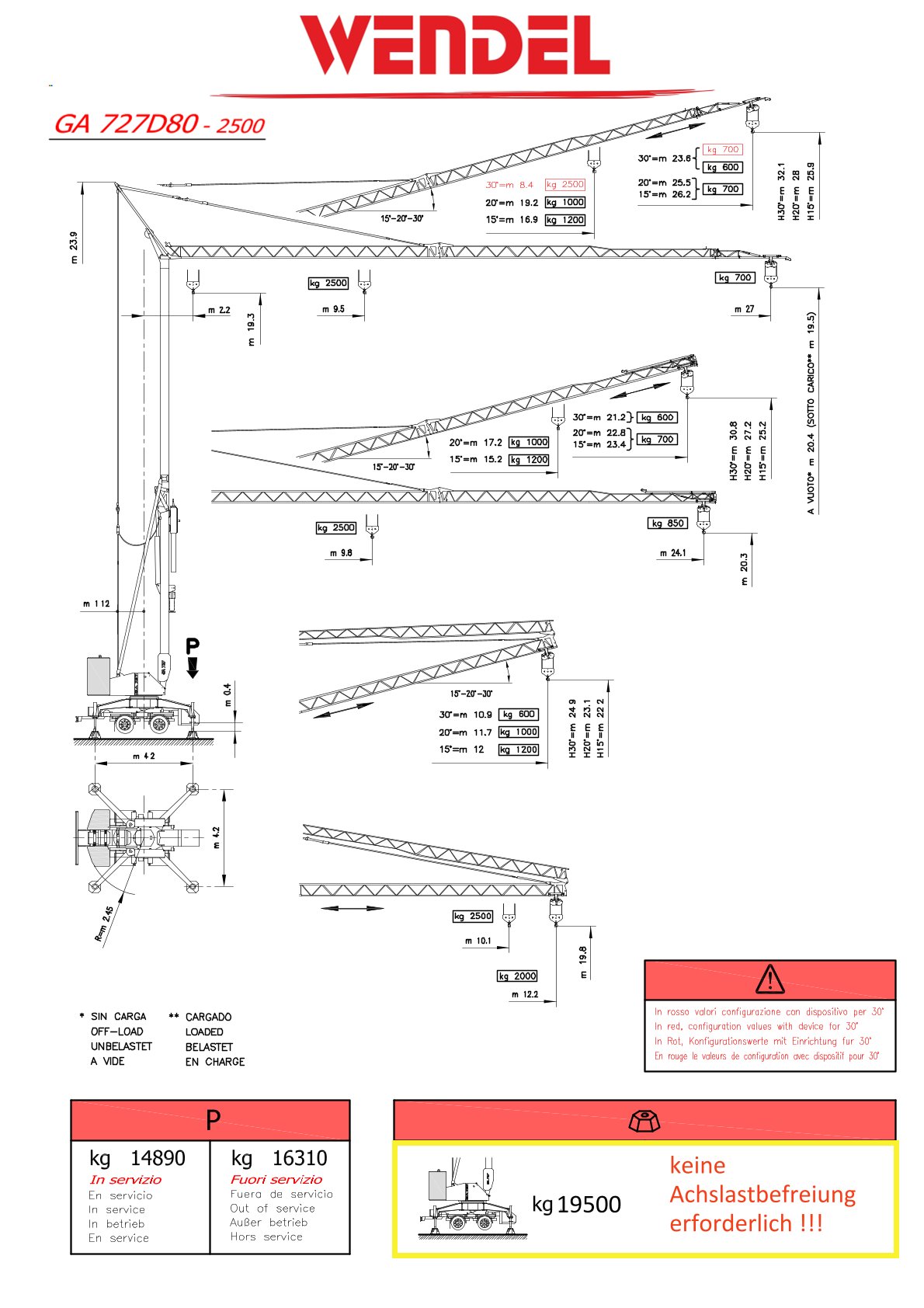 • 20 t Gesamtgewicht, bei Radius 2,45m, Stützmaß 4,20m x 4,20m