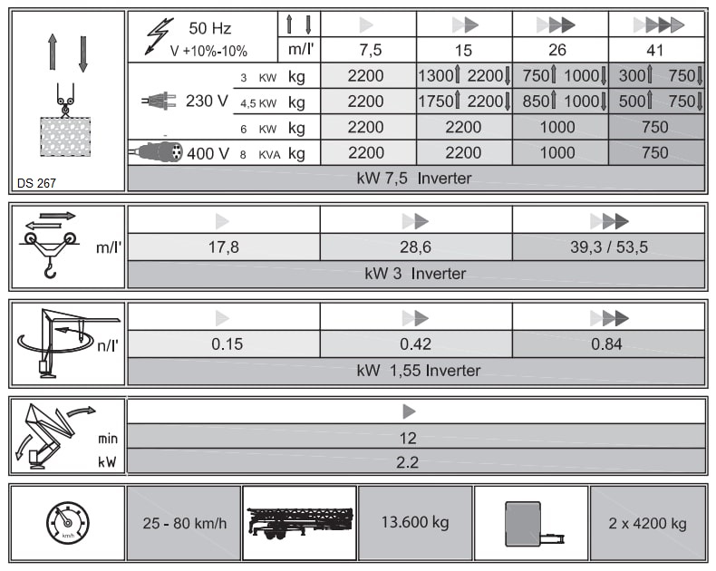 • Frequenzgesteuertes Schenkwerk, Hubwerk und Laufkatzwerk