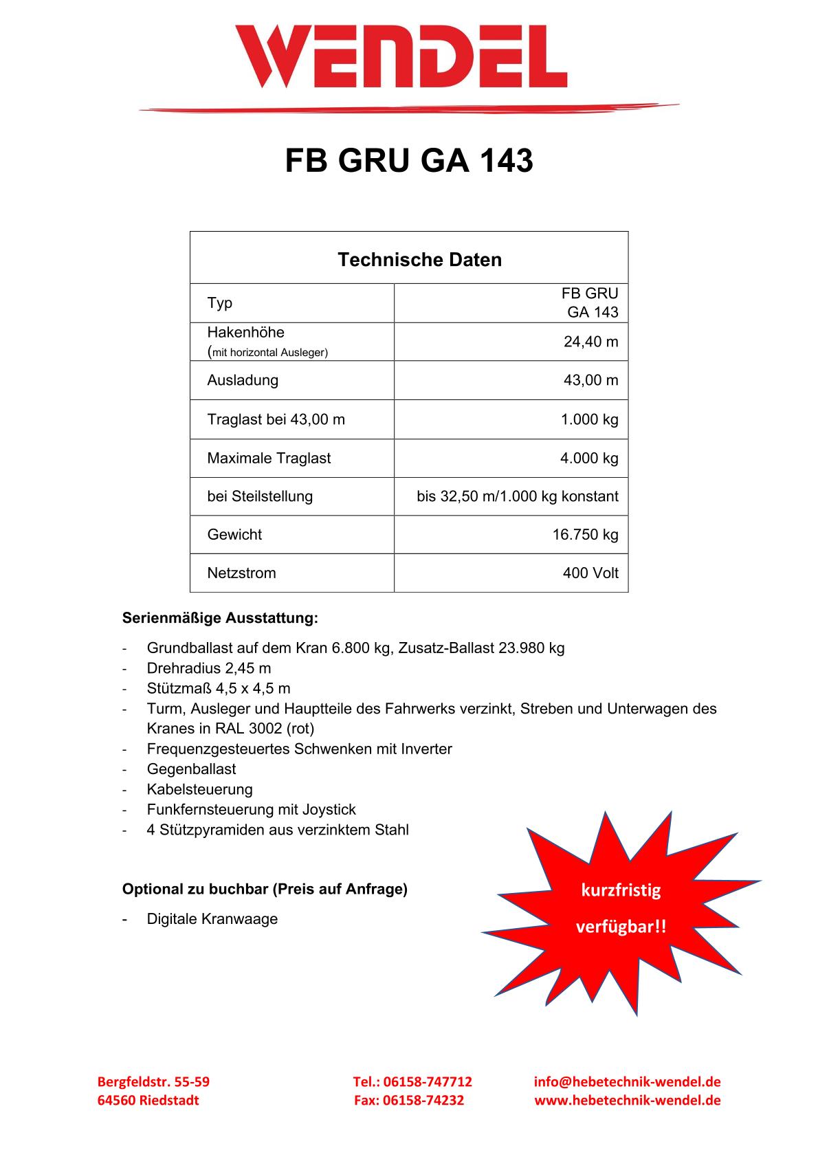 max. Tragkraft (kg) bei 43,00 m 1.000