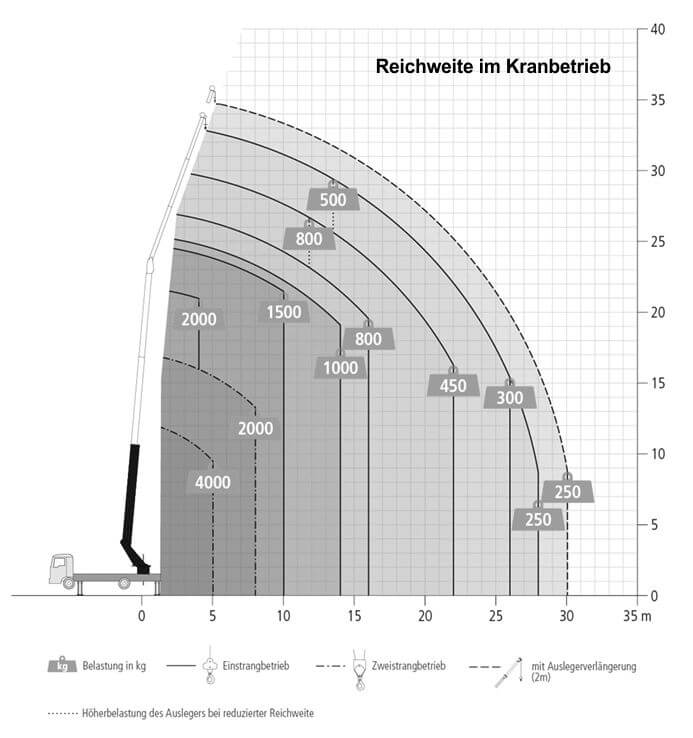 Reichweite im Kranbetrieb