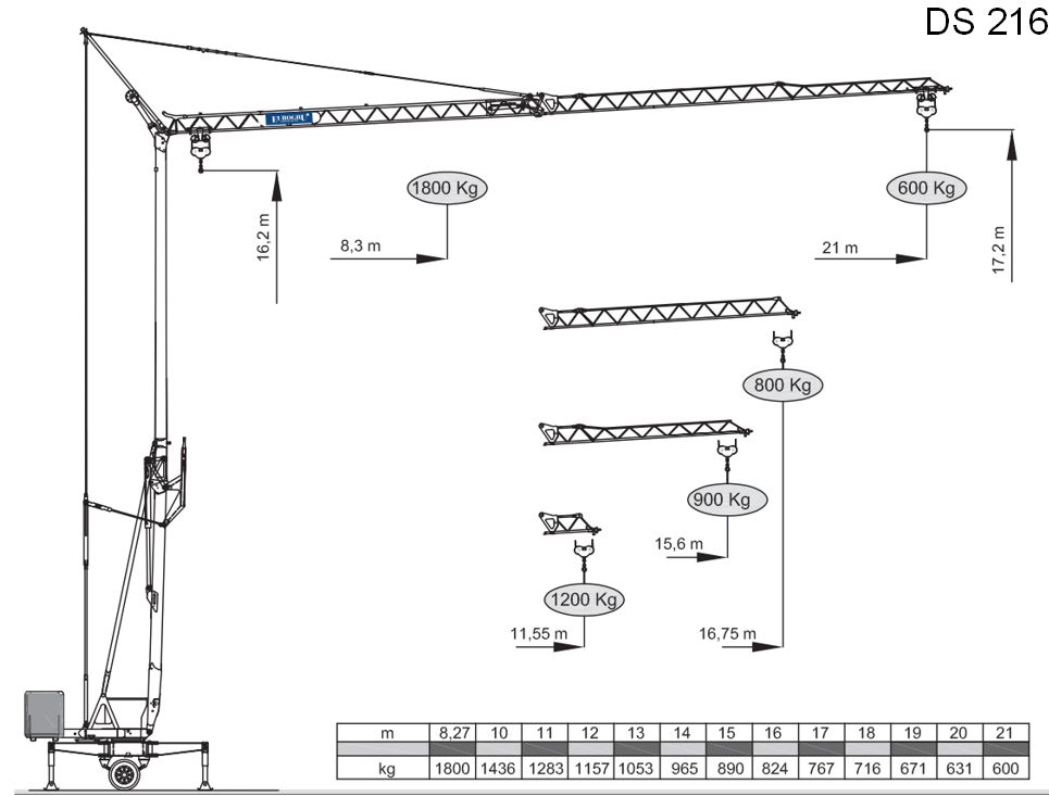 | max. Tragkraft (kg) bis 8,30 m: | 1.800 |